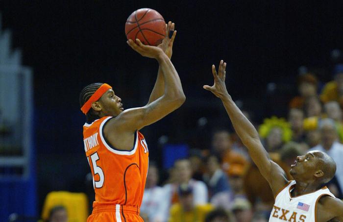 安东尼在雪城的唯一一个赛季堪称传奇。球队以30胜5负收官,安东尼打破了校史新生得分纪录,并成为NCAA历史上首位赢得最终四强赛最杰出球员奖的新生。他半决赛面对德州砍下33分14篮板,决赛对阵堪萨斯贡献20分10篮板7助攻,最终带领雪城大学在2003年夺得校史首次全国冠军。