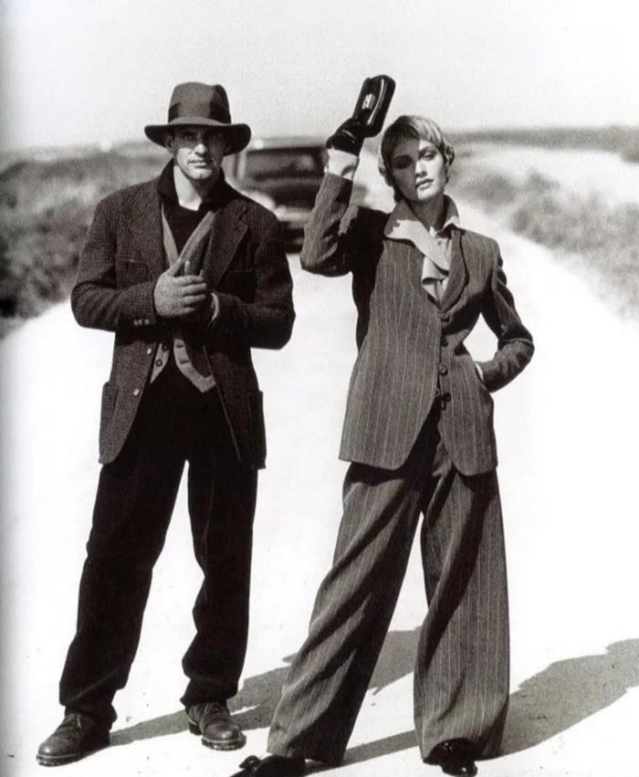 电影《美国舞男》剧照 图源:新闻坊与此同时,阿玛尼还革新了女装设计,在女装中融入男装元素,去除呆板阔肩,让职业女性着装兼具舒适与气场。