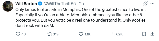 前掘金球员巴顿:只有懦夫才会在孟菲斯感到不安全 byxiaoqiao 发表于2025年07月12日 雷速体育6月19日讯 近日,A·史密斯在节目中谈及在孟菲斯打球不安全的问题引发热议。今日,前掘金球员威尔·巴顿更新社媒谈及在孟菲斯打球的安全问题,他表示:“只有懦夫才会在孟菲斯感到不安全,这是最适合居住的伟大城市之一,尤其对运动员而言。孟菲斯会以无与伦比的方式接纳你、保护你。但只有真正懂行的人才能理解这一点,不与孟菲斯为伍的都是蠢货。” 你可能感兴趣的内容 上一篇文章 詹俊:两个令人绝望的丢球 伊万执念什么时候能破&下半场换塞鸟? 发表于2025年07月12日 byxiaoqiao 查看文章 下一篇文章 Skip:字母哥不爱和利拉德一起打球 后者缺阵时前者打出MVP表现 发表于2025年07月13日 byxiaoqiao 查看文章 你可能会喜欢